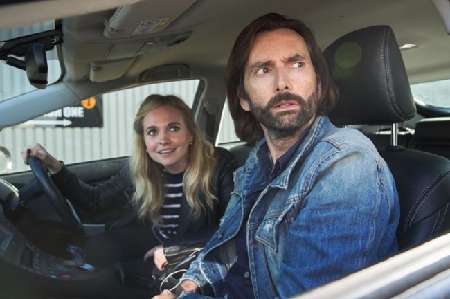 And superficially all the elements are back. Tennant and Sheen have great chemistry, charm and timing with Evans providing both the structure of the show (both on and off the screen) as well as the more put-upon, beaten down element of the trio. And the show creators are well aware of the wider meta-possibilities provided by the juxtaposition of the first series’ choice of play-text with its performers’ situation.